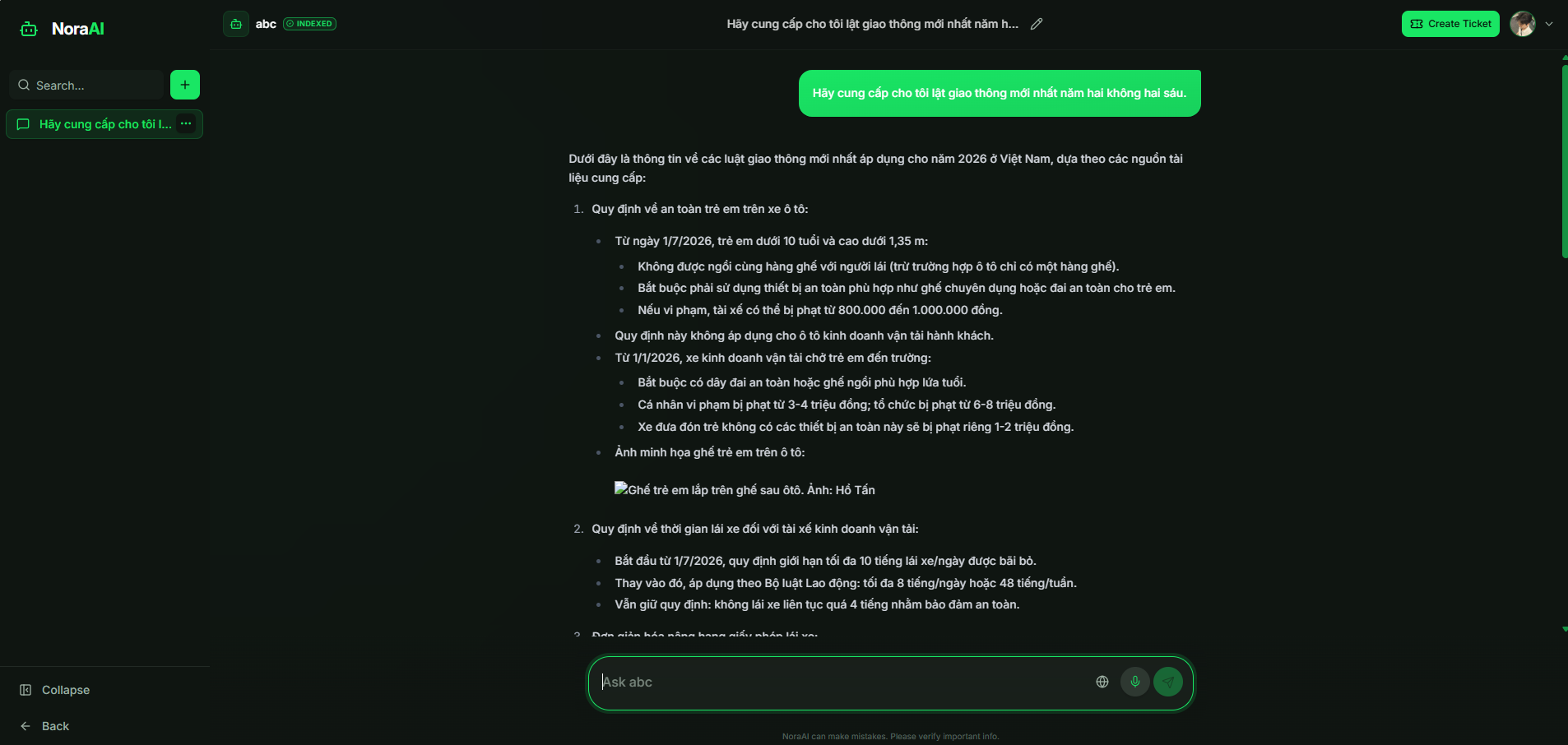 Connect your internal knowledge base. Nora learns from your documentation and history to provide accurate, business-specific answers.